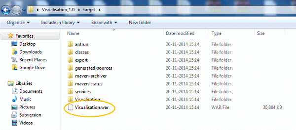 Copy the above generated war file into the Tomcat folder “webapps“.
