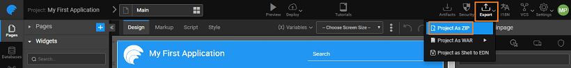 • You can also use the ZIP icon from the Project Dashboard to export the project without opening the same.