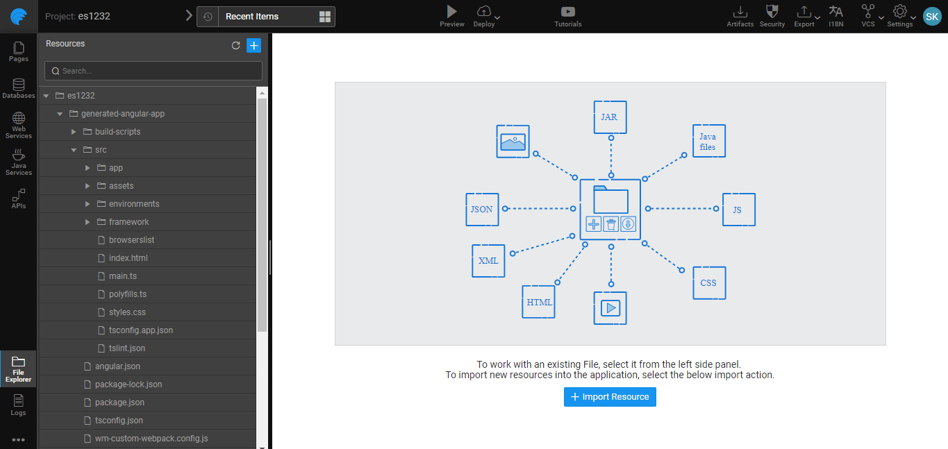 With the Angular code generation in place, the users can see the generated code in parallel to their application development in the File Explorer Section.