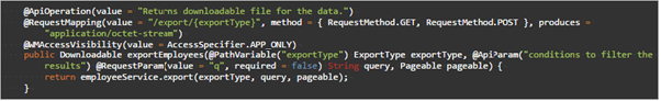 • Method Name Example: exportEmployees