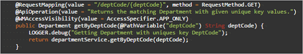 • Method Name Example: getByDeptCode (unique key for department entity)