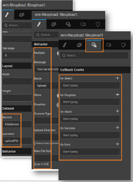 FileUpload widget can be used to let users upload files to your apps. WaveMaker FileUpload widget generates a Java Service to enable additional file processing functionality. It exposes few methods like uploadFile, listFiles, and deleteFile.