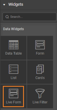 To use a form in your app, drag and drop the Live Form widget onto a page.