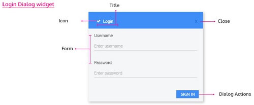 Dialog widget in your project can be accessed by associating the open and close properties of the dialog with an event of any other widget. The dialog can be accessed through scripting by adding DialogService to the page controller and adding the code for open and close as shown below, here we are displaying an alert dialog on click of a button: Click event of the button should trigger the following JavaScript code: