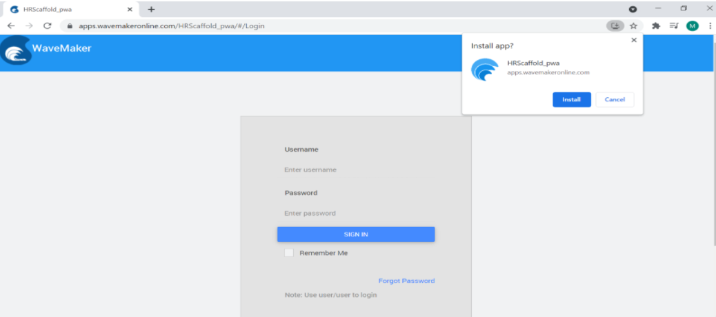 • If no icons are present in the "pwa-icons" directory, PWA will use the WaveMaker default icons.