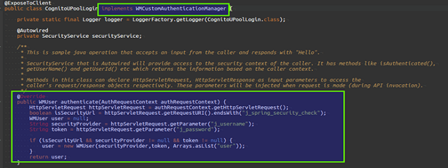 public class CognitoUPoolLogin implements WMCustomAuthenticationManager {
