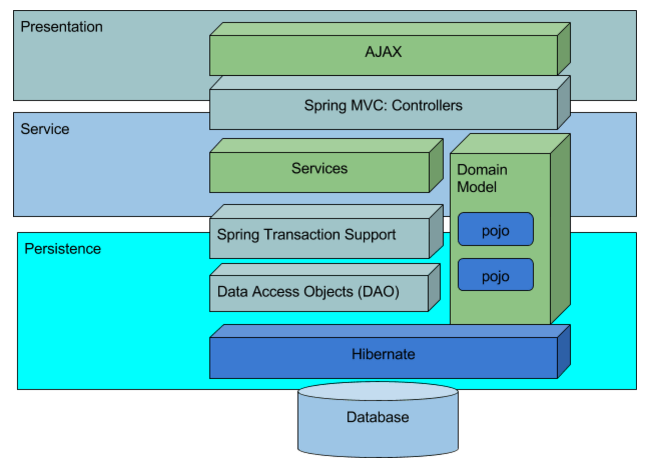 - Layer 3: DAO Layer - responsible for interacting with the underlying database. This code uses Hibernate framework.