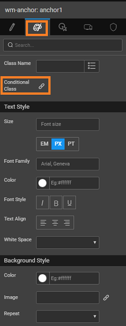 Conditional Class property allows you to bind an expression which will be evaluated and appended as classes to a widget.