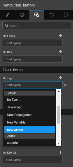 Binding the Navigation Action to a Widget event - For example: Touch Event like on Tap – Use the tap touch event to trigger a Navigation Action to move to a new page or segment.