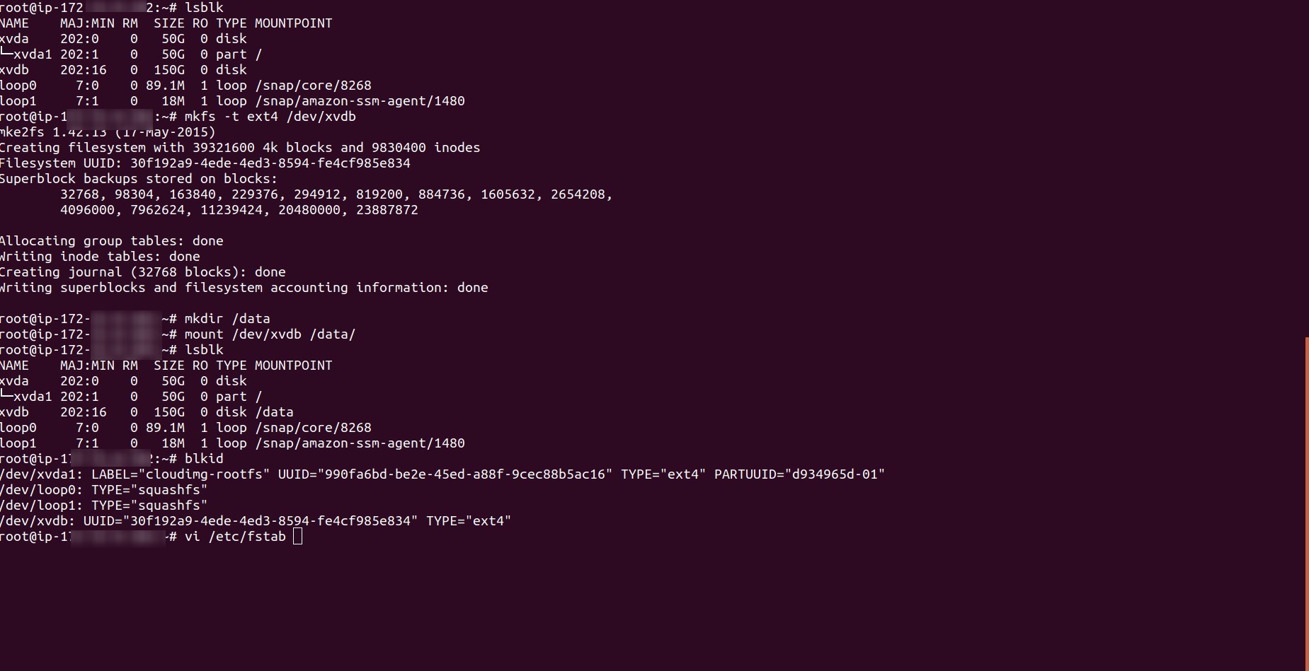 Command : mkfs -t ext4 /dev/<block-device-name_1>