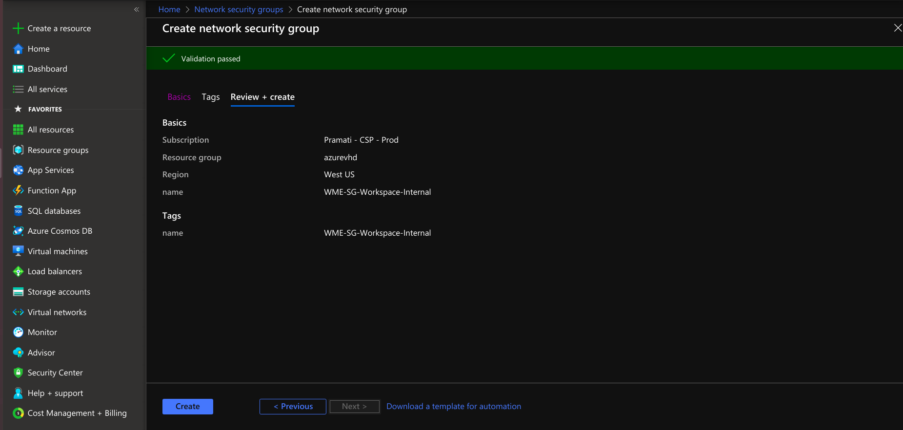 Creation of Network Security Group for Studio Workspace/App Deployment Virtual Machine