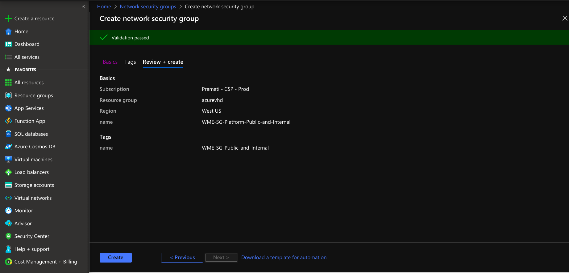 • Provide tags that are name-value pairs for the network security group for categorizing the resources.