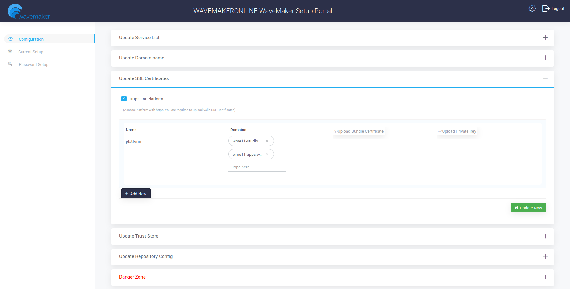 • Alternatively, ConfigWizard allows you to upload the required certifiacates if you have missed to upload during setup process.