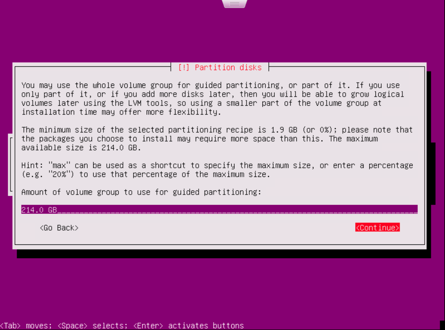 • Select the disk partition method.
